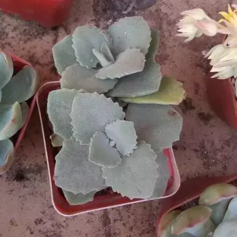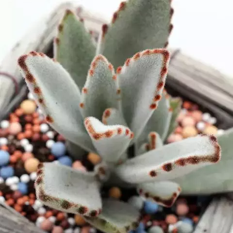 毛茸茸的毛、半边锯齿状的叶,缺口会再冒出小芽,夏型(冬眠),喜光照、可直晒、耐热(但要通风),适合春、秋。夏天要注意浇水不可过多,也不能太少。适合肥沃、排水性佳的沙土。很会长,可长到30公分左右,日晒不足会徒长春秋夏初是生长旺季
