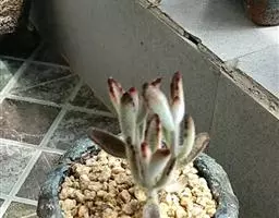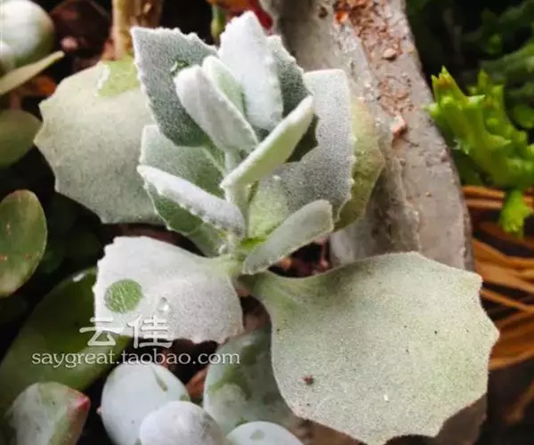 和其他兔耳一样,千兔耳叶子表面也是有一层软绒毛,摸起来很有手感,千兔耳的美,除了它的毛毛叶外,还有那非常对称整齐的对生叶,锯齿状的叶,有点萌萌白枫叶的即视感,整体跟人一种毛绒绒的可爱感。枝干易木质化,可通过断水来塑型。也有称白兔耳可开粉红色的花。大概因为其叶片多呈现白色,因此也有人误称为白兔耳,白兔耳的叶片会更像兔子耳朵的细长感,可以参照下图。相对来说,白兔耳会比较少见,价格也更贵点。