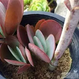 趣蝶莲,为景天科珈蓝菜属的植物。多年生常绿多肉草本。茎短;叶对生,卵圆形,先端圆,基部渐狭,近无柄,…