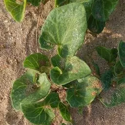 番薯 Lam.),多年生草质藤本植物,具有乳汁;其块根为白、红或黄色;茎生不定根;叶呈宽卵形或卵状心形,叶色有浓绿、黄绿、紫绿等,前端渐尖,基部呈心形或近平截;花冠为粉红、白、淡紫或紫色,呈钟状或漏斗状,无毛;蒴果呈卵形或扁圆形;由于番薯是于异花授粉,自花授粉常不结实,所以有时只见开花不见结果。 种子1-4粒,通常2粒,无毛。番薯原产于南美洲及大、小安的列斯群岛,现已广泛栽培在全世界的热带、亚热带地区,但在一些较北的地区如黑龙江省也已栽种成功,中国大多数地区都普遍栽培。番薯适应性强,喜温暖多光而不耐霜冻,抗旱耐碱,适种于肥沃而排水良好的砂质壤土,是一种易于保收的作物。番薯是一种高产而适应性强的粮食作物,在中国南方,有“一造番薯半年粮”的说法, 与工农业生产和人民生活关系密切;块根除作主粮外,也是食品加工、淀粉和酒精制造工业的重要原料;根、茎、叶可作