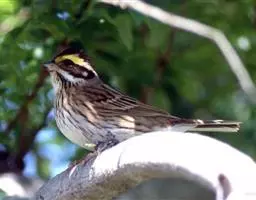 白喉带鹀(学名:Zonotrichia albicollis)属小型鸣禽,头部有独特的标记,背部褐色,有黑色条纹,与雀科的鸟类相比较为细弱,上下喙边缘不紧密切合而微向内弯,因而切合线中略有缝隙。通常栖息于半开放的地区的灌木丛。主以草子、种子、果实等植物性食物为食,也吃昆虫和蜘蛛。非繁殖期常集群活动,繁殖期由雌鸟在地面或树上、灌丛内筑碗状巢,卵蓝绿色或淡绿色,12至14天孵化。雄鸟帮助喂养雏鸟。