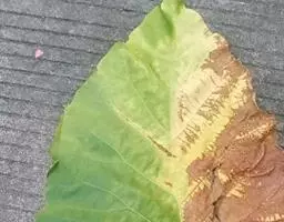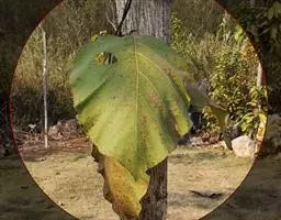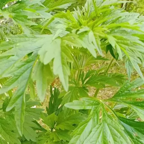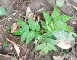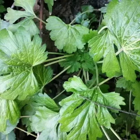 叶形变化很大,最下部茎叶心状圆形,长7-12厘米,宽6-9厘米,3裂,裂片上常有深缺刻,先端锐尖,基部心形,草质或坚纸质,上面绿色,下面淡绿色,两面均疏被短硬毛,侧脉3-6对,与侧脉在上面下陷,背面明显突出,叶柄长约2厘米;茎中部叶通常卵圆形,先端锐尖;花序上的苞叶变小,卵圆形或卵圆状披针形,先端长渐尖,边缘具不等大的锯齿,或为深裂,或近于全缘。