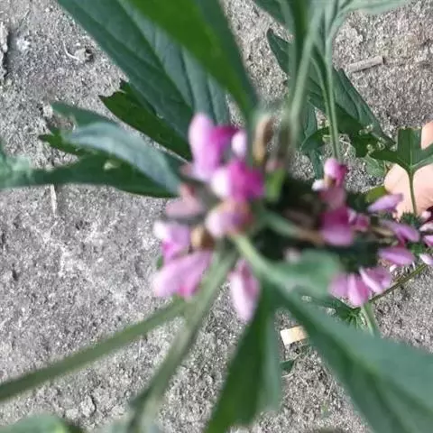花冠淡红或淡红紫色,长2.5-2.8厘米,冠筒逐渐向上增大,长约达花冠之半,外面密被短柔毛,内面近基部1/3具近水平向的鳞状毛毛环,近下唇片处具鳞状毛,冠檐二唇形,上唇直伸,长圆形,内凹,长约1.2厘米,宽0.5厘米,全缘,外面密被短柔毛,内而无毛,下唇长0.8厘米,宽0.5厘米,短于上唇片1/3,外面被短柔毛,内面无毛,3裂,中裂片大于侧裂片一倍,倒心形,先端明显微缺,边缘薄膜质,基部收缩,侧裂片卵圆形,细小。雄蕊4,均延伸至上唇片之下,平行,前对较长,花丝丝状,扁平,中部疏被微柔毛,花药卵圆形,二室。花柱丝状,略超出于雄蕊,先端相等2浅裂,裂片钻形。花盘平顶。子房褐色,无毛。