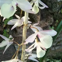 球花石斛,是兰科石斛属的多年生附生草本。茎直立或斜立,圆柱形,粗壮,基部收狭为细圆柱形,不分枝,…