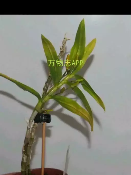 短棒石斛:茎肉质状,近扁的纺锤形,不分枝,具多数钝的纵条棱和少数节间。叶2-4枚近茎端着生,革质,…