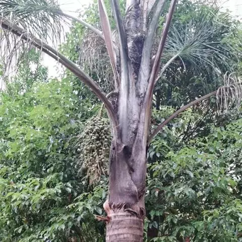 董棕是棕榈科鱼尾葵属的乔木。茎黑褐色,具明显的环状叶痕;羽片宽楔形或狭的斜楔形,幼叶近革质,…