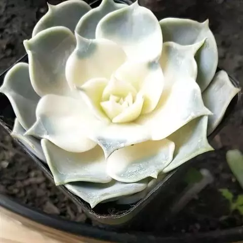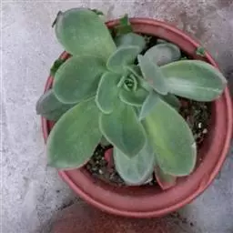 植株叶片莲座状排列,匙型,有叶尖,叶缘圆弧状,叶片肥厚,叶片光滑微量白粉,叶片草绿色至墨绿色。阳光充足叶片紧密排列边缘和叶尖会发红,弱光则叶色浅绿,叶片变的窄且长,叶片间的间距会徒长拉长。春秋是生长旺季。