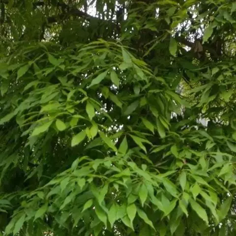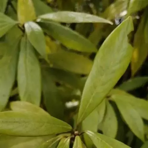 大乔木,高达15-20米,树干通直,分枝少;老的树皮灰白色,新的树皮带黄褐色。小枝有毛或近无毛。叶革质或厚革质,披针形或倒披针形,长7-13(15)厘米,宽2-3(4)厘米,先端渐尖或长渐尖,基部渐狭或楔形,上面发亮,下面有短柔毛,脉上被伸展长柔毛,有时具缘毛,中脉上面下陷,侧脉每边10-14条,上面平坦或下陷,下面突起,横脉及小脉多而密,在下面结成十分明显的网格状;叶柄长5-11(20)毫米。