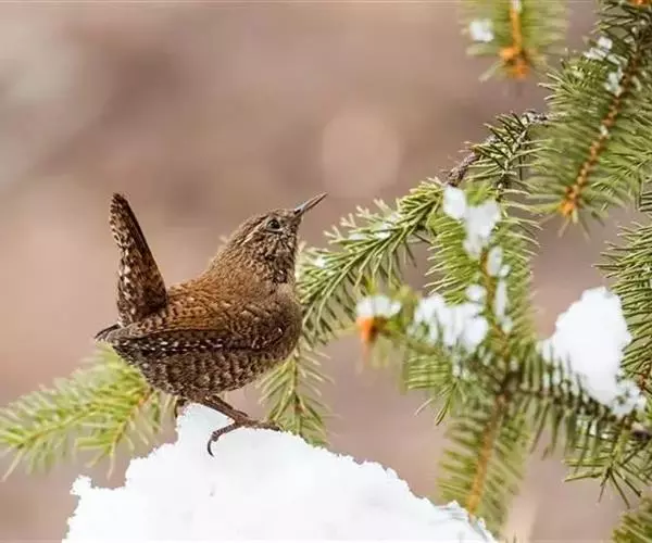 鹪鹩在非繁殖季节的冬季也常鸣唱,歌声宏亮清脆,唯不甚婉转,鸣叫时常做昂首翘尾之姿,每鸣叫一段后,再更换一地重唱,雌鸟鸣唱声调似雄鸟,但音色低而曲短。