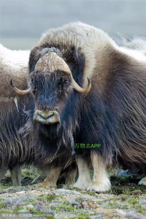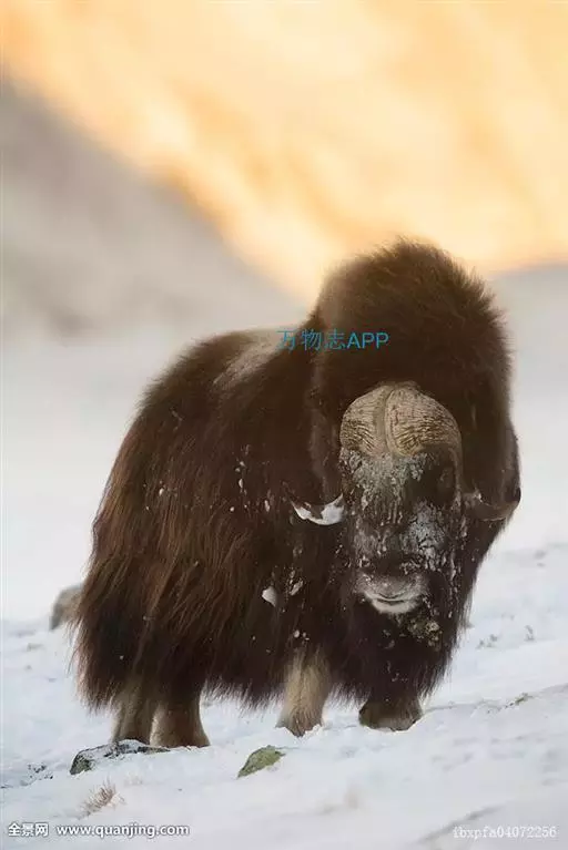 麝牛是偶蹄目牛科麝牛属的唯一物种,仅有二个亚种。体长180-230厘米,尾长9-10厘米,肩高一般120-150厘米,体重200-410千克。 麝牛躯体敦实。雌性略小。吻、鼻部裸露,前额有簇毛。眼大而圆,瞳孔紫蓝色,唇和舌尖也是紫蓝色。两只小耳也被毛所遮。体毛长,绒毛丰满,为暗黑棕色,颈背至肩部有鬣毛,长逾30厘米,略有卷毛,下垂如披风。毛分成两层,长毛下面还有一层厚绒毛,叫毛丝,既坚韧,又柔软,可挡住寒冷和潮气,上层针毛可防雨、雪并耐磨。躯干背部是鞍形的浅色毛。年龄愈大,白色区愈明显。尾很短,隐在长毛下面。四肢短而强壮,蹄子宽大开扩,蹄下生有白色的毛,能踏冰雪而不滑。有趣的是,它的左、右蹄并不对称。雌、雄均有角,角基部扁厚,由正中均分,贴着头骨向外侧生长,两角先向下弯曲,而后又向上挑起。长度在60厘米左右,最长的纪录是70.5厘米,雌角短小得多。