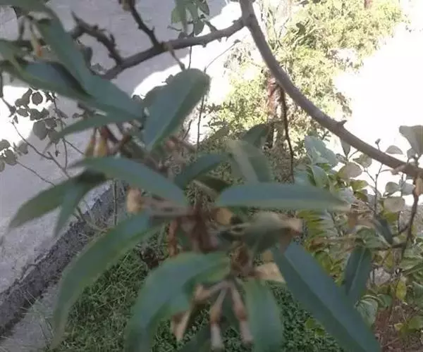 果实椭圆形,长12-14毫米,幼时被褐色鳞片,成熟时红色,果核内面具白色丝状棉毛;果梗长4-6毫米。花期9-12月,果期次年4-6月。