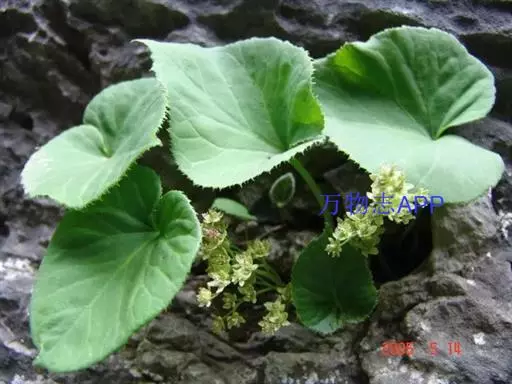 多年生草本,高12-28厘米。根状茎粗壮,具芽,芽鳞棕褐色。叶均基生,2-3枚;叶片心形至卵形,长3.8-9.7(-25.5)厘米,宽3.4-9(-22)厘米,先端短渐尖,边缘具不规则齿牙,基部心形,腹面近无毛,背面和边缘具腺毛,叶柄长11.5-13.5厘米,被腺毛。花葶不分枝,密被腺毛。