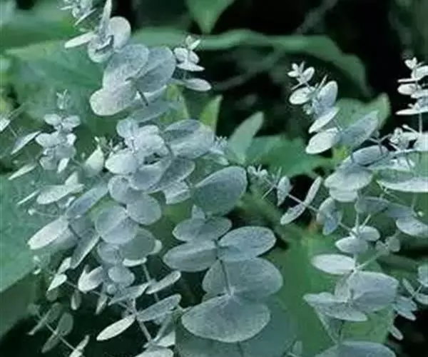 银叶桉是常绿灌木或小乔木,株高可达3米。幼叶对生,无柄,阔卵形或阔盾形;老叶互生,呈披针形,两面均被白粉,银绿色。