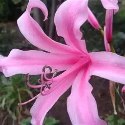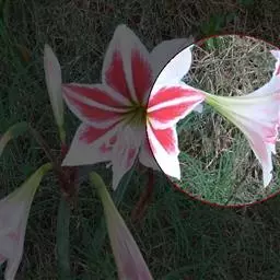 长筒石蒜草本,地生。鳞茎卵球形;叶披针形;伞形花序,有花5-7朵,花白色;花被裂片腹面稍有淡红色条纹,…