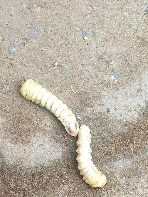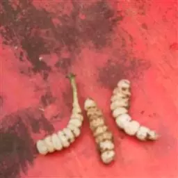 斗米虫为锈色粒肩天牛的幼虫,锈色粒肩天牛主要危害槐树Sophora japonica,…