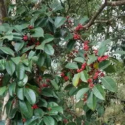 枸骨又名猫儿刺、老虎刺等,为常绿灌木或小乔木,叶形奇特,碧绿光亮,四季常青,入秋后红果满枝,经冬不…