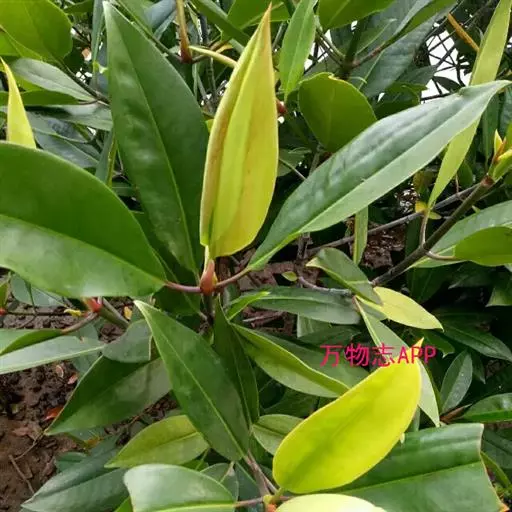 乔木或灌木;树皮灰黑色,有粗糙裂纹。叶椭圆状矩圆形,长7-15厘米,宽3-5.5厘米,顶端短尖,基部楔形;叶柄暗绿色,长2.5-4.5厘米;托叶长3-4厘米,淡红色。