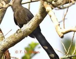 绿嘴地鹃:体形似小鸦鹃,但羽色大致绿灰;嘴绿色,头侧眼的周围有一裸区;后爪弯曲。虹膜赤红色,…