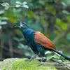 红翅凤头鹃:体长约38厘米,顶冠及凤头黑色,具显眼的直立凤头,背及尾黑色而带蓝色光泽,翅栗红色,…