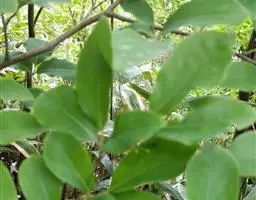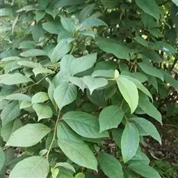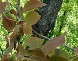 落叶灌木或小乔木;树皮棕褐色,有纵裂及斑点。幼枝条黄绿色,光滑、无皮孔,幼时有绢状柔毛,不久脱落。冬芽长角锥状,芽鳞红色。叶互生,通常卵形或倒卵状椭圆形,有时为狭倒卵形或狭椭圆形,长(5)9-12(16.5)厘米,宽(2.5)5.5-8(12.5)厘米,先端渐尖,基部圆或宽楔形,有时稍心形,纸质,上面绿色,幼时在中脉上被微柔毛,不久脱落,下面带绿苍白色,被白色柔毛,后渐脱落成几无毛,羽状脉,侧脉每边6-8(10)条;叶柄长6-17(30)毫米,幼时被柔毛,后脱落。