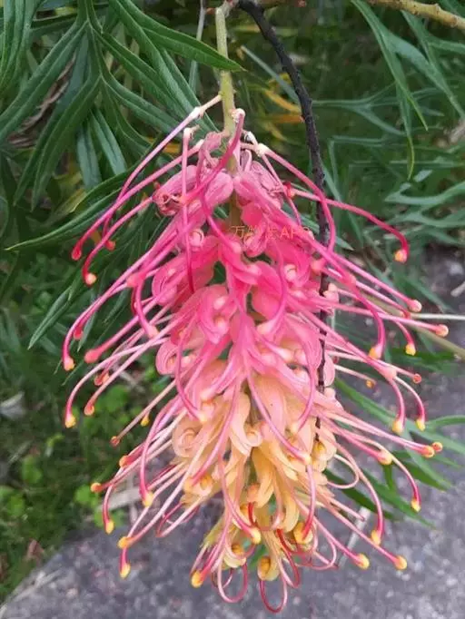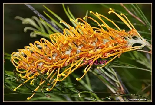银桦(Grevillea robusta)大乔木,高可达20米;幼枝被锈色茸毛。叶为2回羽状深裂,裂片5-10对,披针形,常5-10厘米,两端均渐狭,第2次裂片全缘或再分裂,上面秃净而亮或薄被丝毛,背密被银灰色丝毛,边缘背卷。花呈橙黄色,为总状花序,此等花序单生或数个聚生于无叶的短枝上,长7-15厘米,多花,花柄长8-12毫米,极扩展或稍下弯,秃净,花被长约1厘米;子房秃净,具柄。花期:5月。果:卵状矩圆形,多少偏斜,长14-16毫米。宽6-8毫米,稍压扁,常冠以宿存的花柱。种子倒卵形,周边有翅。