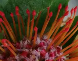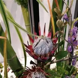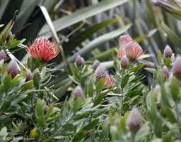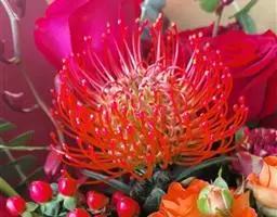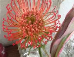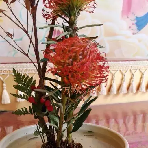帝王花,山龙眼科帝王花属多年生常绿灌木植;茎干粗壮,叶色翠绿光亮;花朵呈圆球状;其苞片有的完全打开,…