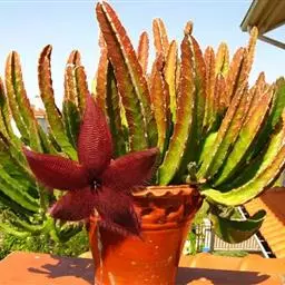 大花犀角是夹竹桃科犀角属的多年生肉质草本植物,茎基部分枝,有齿状突起,灰绿色,形如犀牛角,花大,…