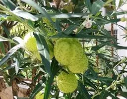 唐棉,株形直立,全株具白色乳汁;叶:线形似柳叶,色浓绿,背面淡绿色,对生;花:繖形花序,腋生,乳白…