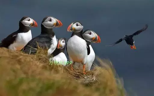 北极海鹦是北极地区特有的一种珍禽。平时栖息于海洋上,只有繁殖时期才回到岸边的岛屿或陆地。把巢穴筑在沿海岛屿的悬崖峭壁上的石缝沟中或洞穴里。巢穴主要用作休息、睡觉和储藏食物。平时在大海的上空展翅飞翔。