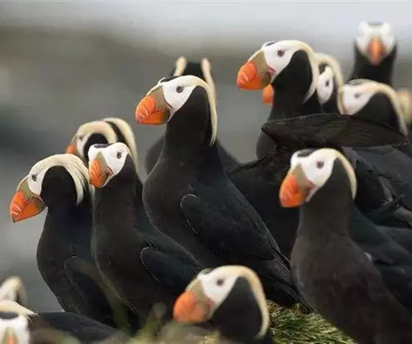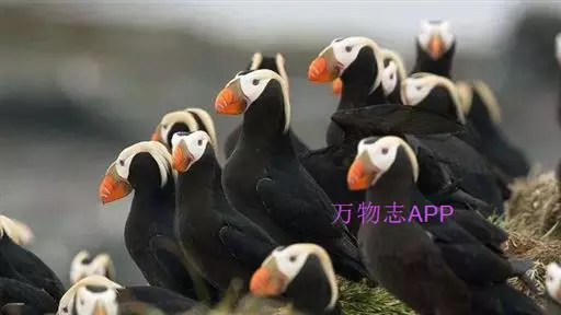 角嘴海雀,是海雀科、角嘴海雀属的中型海鸟,体长32-41厘米,嘴短而粗呈圆锥状、橙色。夏羽上嘴基部…