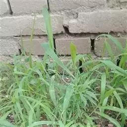 马唐,拉丁文名:Digitaria sanguinalis (L. ) Scop.),是单子叶植物纲、禾本科,马唐属一年生。秆直立或下部倾斜,膝曲上升,无毛或节生柔毛。叶鞘短于节间,无毛或散生疣基柔毛;叶片线状披针形,基部圆形,边缘较厚,微粗糙,具柔毛或无毛。穗轴直伸或开展,两侧具宽翼,边缘粗糙;小穗椭圆状披针形,脉间及边缘大多具柔毛;第一外稃等长于小穗,具7脉,中脉平滑,两侧的脉间距离较宽,无毛,边脉上具小刺状粗糙,脉间及边缘生柔毛;第二外稃近革质,灰绿色,顶端渐尖,等长于第一外稃花果期6-9月。