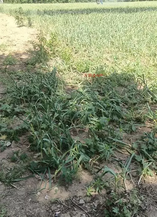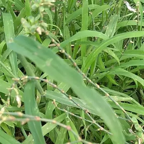 2. 马唐 10%草甘膦水剂或41%农达水剂或74.7%农民乐水溶性粒剂,这三种除草剂的活性成分(有效成分)相同,但活性成分的含量以及它们的加工剂型不同。适宜的用药量分别为草甘膦900~1200毫升/亩;农达150~200毫升/亩;农民乐100~150克/亩,兑水量都是30公斤/亩。这三种除草剂除了可高效地灭除马唐外,还可灭除几乎所有的一、二年生杂草以及多年生宿根性杂草。为了增加杂草对这三种除草剂的吸收量以提高药效,应选择在杂草的茎叶已经长得很茂盛,但植株尚未开花前施药。稀释时必须用清洁水而不用污水或泥浆水配制药液才能保证药效。这三种除草剂也是灭生性除草剂,也必须定向喷洒杂草的茎叶,防止药液雾滴飘移到果树的叶片及嫩枝和嫩芽上,以免发生药害。施药后8小时下雨,不影响药效。