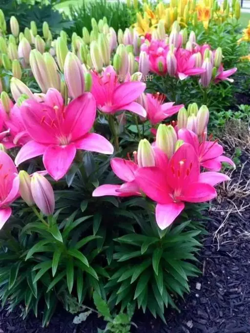 亚洲百合 2.分批播种:因为花期受气温、日照、光强度等多种气候因素的综合影响,所以在安排种植期时应考虑不同季节的气候情况,例如10月中旬前播种的种球因气温较高其花期提早,而11月上旬后播种的种球因气温较低使花期延迟。采用分期播种(一般每隔15天左右分批播种),并结合气候条件变化预测安排播种量,可保证均衡产花。
