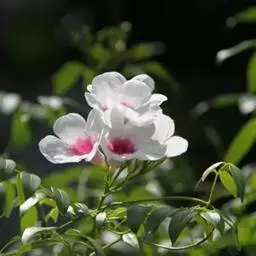 粉花凌霄 K.Schum.)是紫葳科魔盒凌霄属的落叶藤本植物。奇数羽状复叶对生,小叶全缘,…