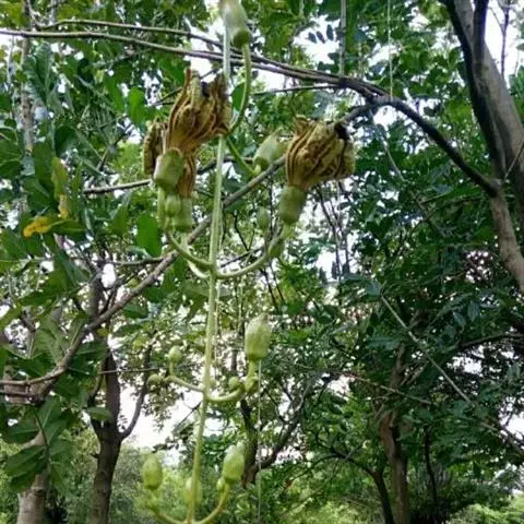 铁西瓜为紫葳科、葫芦树属的常绿小乔木,高5~18米,为典型的热带雨林“老茎生花”植物。其花、果单生…
