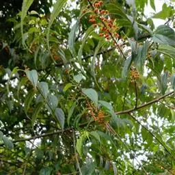狭叶山黄麻(学名:Trema angustifolia (Planch.) Blume)是榆科山黄麻属植物,灌木或小乔木,枝纤细紫红色。叶卵状披针形,叶背浅绿色,花单性,雄花小,核果宽卵状或近圆球形,熟时桔红色,4-6月开花,8-11月结果。
