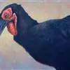 雌鸟尾白色,其余体羽黑色,亦具和雄鸟一样的金属绿色或紫蓝色光泽。喉囊皮肤亮深蓝色,其上亦具一道黑色横带。
