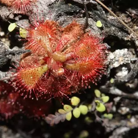 自然开花枯萎的锦地罗有一定几率长出几个新芽,更可靠的方法是播种。茅膏菜的种子大多细小如灰尘,播种时需小心。直接撒在湿润的水苔或泥炭上,保持高湿度和明亮光照,一个月左右便会萌发,待其长出足够多的真叶再分盆。锦地罗一般不用叶插法繁殖。