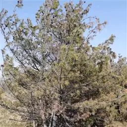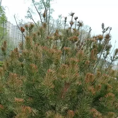 非生物因素 经调查发现另一个原因是自然因素,在黑松受到诸如旱涝、风折、高温高湿、冻害或因管理不善、营养不良等因素导致生长衰弱而引起病虫害发生,是该地区黑松死亡、树势衰弱的又一个重要原因。威海近几年来发生大风、风暴潮、雪灾、冻害的情况较以往年份多,特别是靠近大海的地方,遭受海风、海浪、海雾的侵害更多,而受灾严重的黑松大多在沿海分布,越靠近海岸受害越严重。自然灾害引起黑松树势衰弱,给病菌入侵创造了条件,使黑松感染枯枝病菌而造成枝叶枯黄,严重的造成树体死亡。