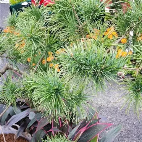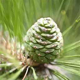 黑松(Pinus thunbergii Parl.),别名白芽松,常绿乔木,高可达30公尺,树皮带灰黑色。四月开花,花单,雌花生于新芽的顶端,呈紫色,多数种鳞(心皮)相重而排成球形。成熟时,多数花粉随风飘出。球果至翌年秋天成,鳞片裂开而散出种子,种子有薄翅。果鳞的麟脐具有短刺。原产日本及朝鲜南部海岸地区。