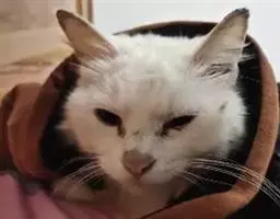 ·详细特征:耳朵色块尤为显著,蓝色眼睛(深蓝色偏少一些),耳朵以下双眼以上的部分有渐变的色块。背部色块非常少,且颜色浅于耳朵,多居于背部顶端(这点区别于高白及中高白)。