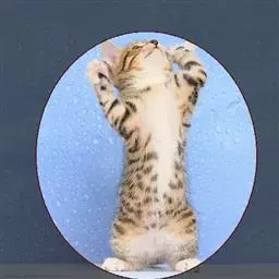 3、眼睛 :大,明亮,蓝色、椭圆形;双眼间距宽阔,微微向上扬。