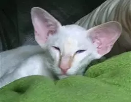 *不合格特征:重点色中带白色斑纹;手套型猫没有白色下巴或白色过高;双色猫的白色面具中有深色斑纹或腿部色块;梵色大面积重点着色;胸部及腹部非白色;眼睛颜色不是蓝色等。