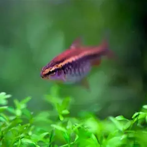 霓虹脂鲤6月龄进入性成熟期,8~10月龄为最佳繁殖期。雌鱼腹部膨大时先与雄鱼分养几日,喂足食物,然后配对入箱。