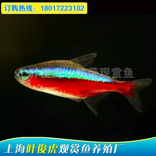 又称“红莲灯鱼”、“霓虹灯”。鱼纲,脂鲤科(拟鲤科)。原产亚马孙河上游。体长3~4厘米,体形较细,色泽美丽,体上部的绿线,因光线角度不同,有时显出蓝色,与体下部的红线极为协调(后腹部至尾鳍基部为红色),又与腹部全红的新红绿灯鱼〔新红莲灯鱼;(Paracheirodon simulans)〕有明显差异。鱼性胆小,常在水上安静的环境下游动。喜食活水蚤,极易饲养。