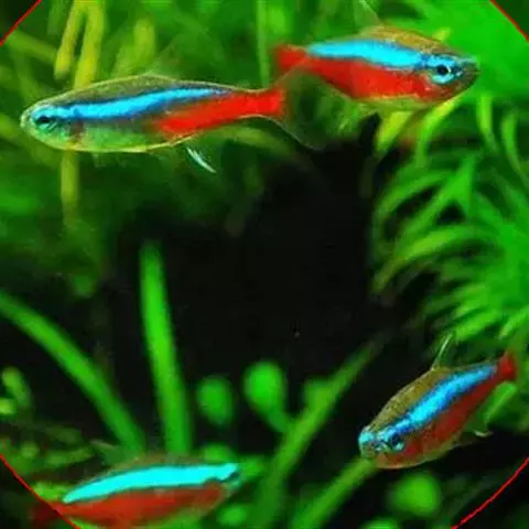 又名霓虹灯、红莲灯。原产于秘鲁、南美洲的亚马孙河上游。体长3~4cm.体表两侧各有一条鲜艳的红色带和一条绿色带,红色带从腹部中央的腹鳍上方向后延伸到尾柄处,绿色带自眼睛向后延伸到背鳍末端。红色带和绿色带贯穿全身,光彩夺目。他们游动在碧水绿草间,好似点点萤火,美妙无比,红绿灯是热带淡水鱼中较为著名的品种。