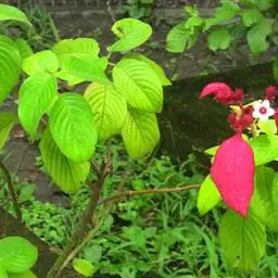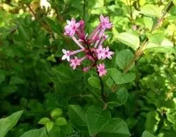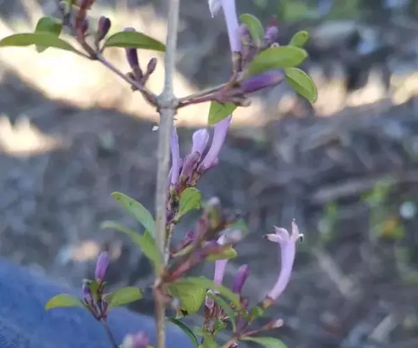 花无梗,常3-7朵簇生枝顶,很少在小枝上部腋生;小苞片透明,卵形,长约3毫米,外面被柔毛,约2/3至1/2合生,裂片近三角形,顶端有硬尖头,与萼近等长;萼裂片阔卵形,长约1.3-1.5毫米,顶端钝,边缘密生缘毛;花冠淡紫红色,漏斗状,长11-14毫米,有时可达20毫米,外面被微柔毛,冠管狭长,下部常弯曲,裂片狭三角形或披针形,长约2-4毫米,顶端内弯;短柱花雄蕊微伸出,花药线形,长柱花内藏,花药线状长圆形;花柱具4-5个线形柱头裂片,长柱花微伸出,短柱花内藏。蒴果长5-6毫米,种子有网状、与种皮分离的假种皮。花期6-8月,果期10月。