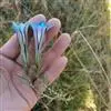 花多数,单生于小枝顶端;花梗黄绿色或紫红色,密被黄绿色乳突、有时夹杂有紫色乳突,长2-8毫米,藏于或大部分藏于最上部叶中;花萼倒锥状筒形,长5-8毫米,外面具细乳突,萼筒常具白色膜质和绿色叶质相间的宽条纹,裂片外反,绿色,叶状,整齐,卵圆形或卵形,长1.5-2毫米,先端钝圆或钝,具短小尖头,基部圆形,突然收缩成爪,边缘厚软骨质,密生细乳突,两面光滑,中脉白色厚软骨质,在下面突起,并向萼筒下延成短脊或否,密生细乳突,弯缺宽,截形;花冠蓝色,筒状漏斗形,长7-10毫米,裂片卵状三角形,长1.5-2毫米,先端钝,无小尖头,褶卵形,长1-1.2毫米,先端钝,全缘或边缘有细齿;雄蕊着生于冠筒中部,整齐,花丝丝状,长2-2.5毫米,花药矩圆形,长0.7-1毫米;子房宽椭圆形,长2-3.5毫米,先端钝圆,基部渐狭成柄,柄粗,长0.5-1毫米,花柱柱状,连柱头长1-1.5毫米,柱头2裂,外反,半圆形或宽矩圆形。蒴果外露,倒卵状矩圆形,长3.5-5.5毫米,先端圆形,有宽翅,两侧边缘有狭翅,基部渐狭成柄,柄粗壮,直立,长至8毫米;种子黑褐色,椭圆形或矩圆形,长0.8-1毫米,表面有白色光亮的细网纹。花果期4-9月。