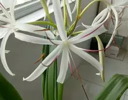 文殊兰 Baker)是石蒜科文殊兰属的多年生粗壮草本。鳞茎长圆柱形;叶深绿色,线状披针形,边缘波状,…