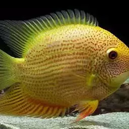 金菠萝鱼,Cichlasoma severum,慈鲷科丽体鱼属。成鱼体长20~25cm,厚侧扁形,…